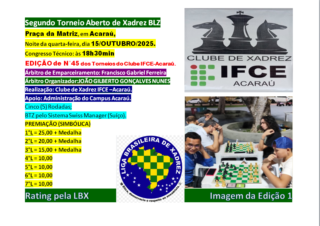 Realização: Clube de Xadrez IFCE –Acaraú.