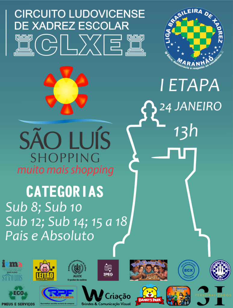 Circuito Ludovicense de Xadrez Escolar!! Uma competição que estimula o raciocínio lógico, a concentração e o espírito esportivo entre nossos estudantes. Participe e faça sua melhor jogada! O torneio é válido para o ranking da Liga Brasileira de Xadrez Entre em contato no WhatsApp: https://wa.me/5598984352399?text=Ol%C3%A1%20em%20que%20posso%20ajudar%3FEstado: MACidade: São LuísResponsável: ULISSES RODRIGUESContato: 98 984352399Data: 24/01/2026